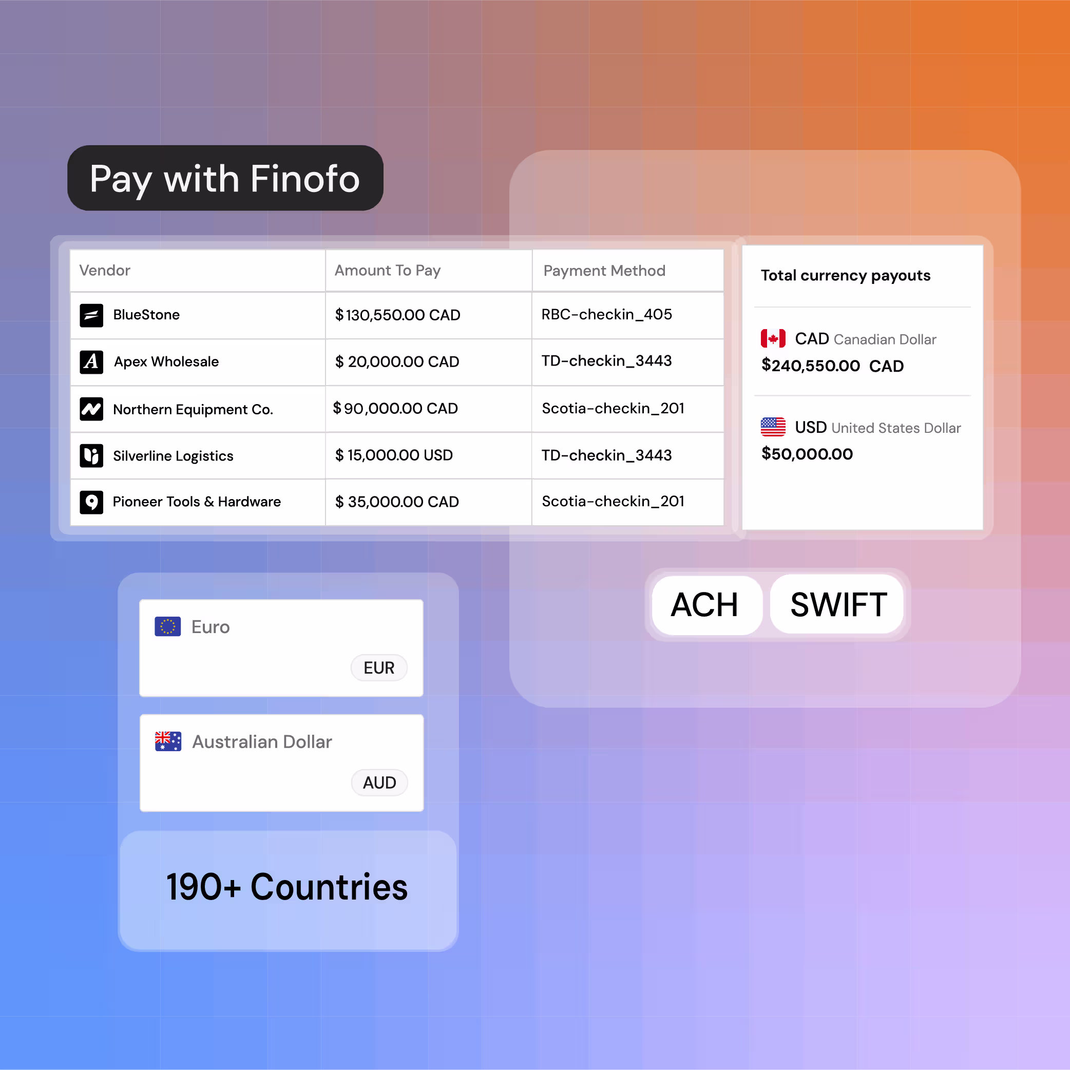 Finofo gives you end to end AP Automation, multi currency global accounts, bank beating FX, $0 bulk international payments, rules-based approval workflows, and live ERP sync, with no hidden fees.