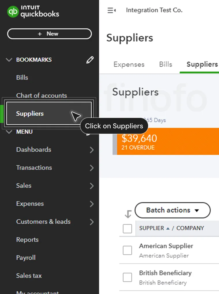To download a CSV of suppliers from QuickBooks Online, follow these steps: