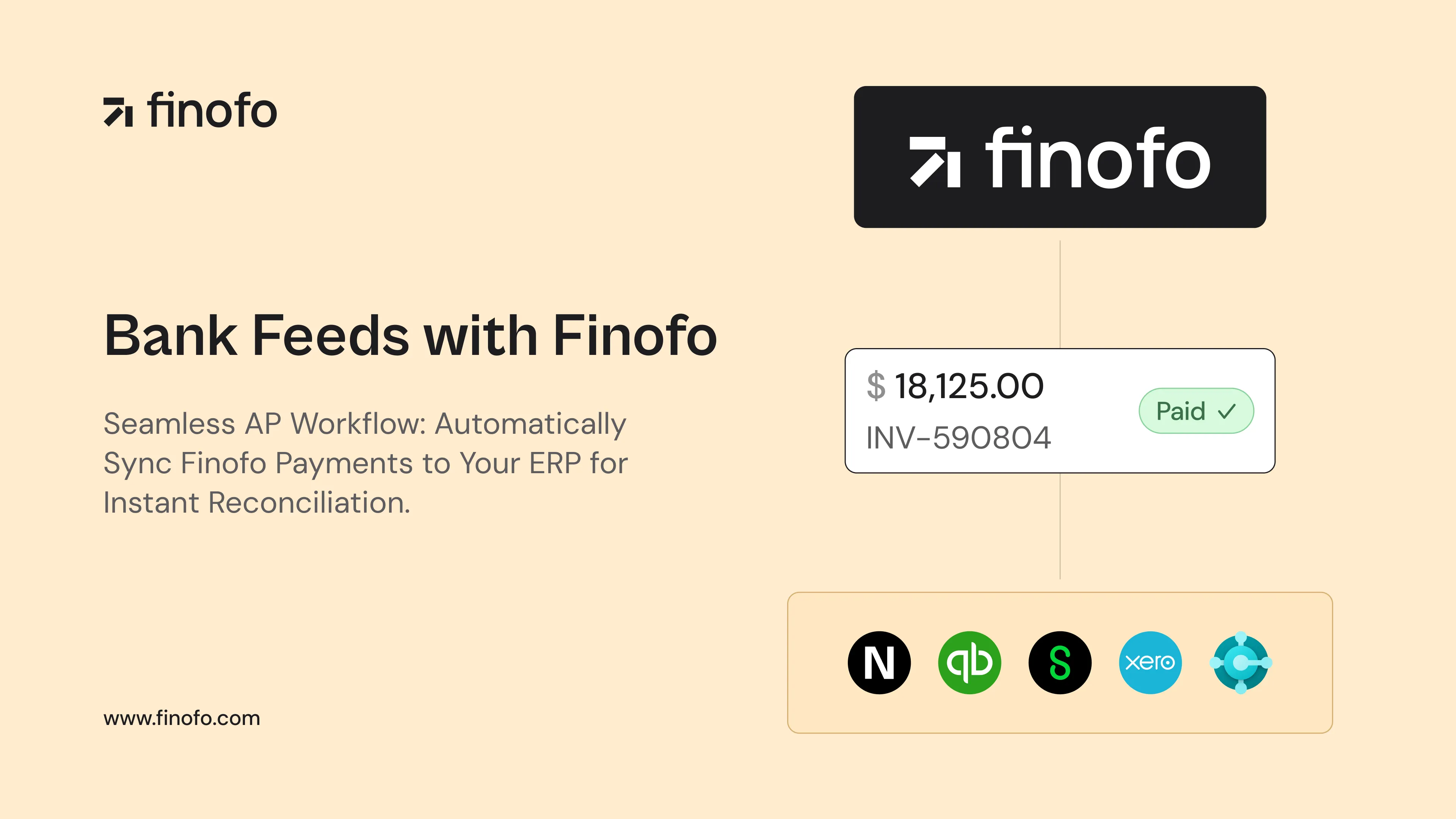 With bank feeds enabled, all your Finofo transactions automatically appear in your ERP, ready for reconciliation. We've built seamless integrations that allow you to connect your ERP with Finofo, enabling you to complete the entire AP run: