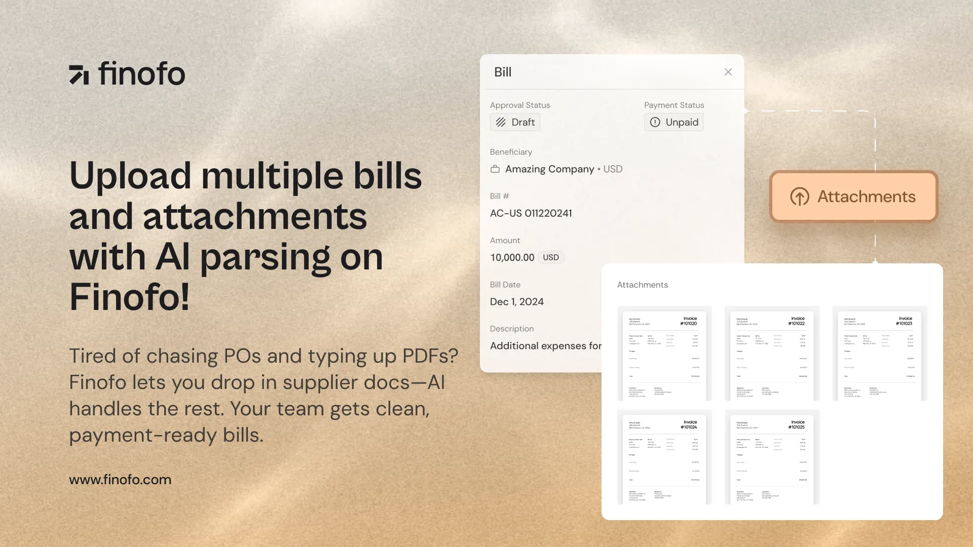 Tired of juggling PDFs, typing line items by hand, and chasing down purchase orders scattered across inboxes? Finofo now lets you drag-and-drop any stack of supplier documents. Our AI does the data entry, your team gets a clean, auditable bill ready for payment.