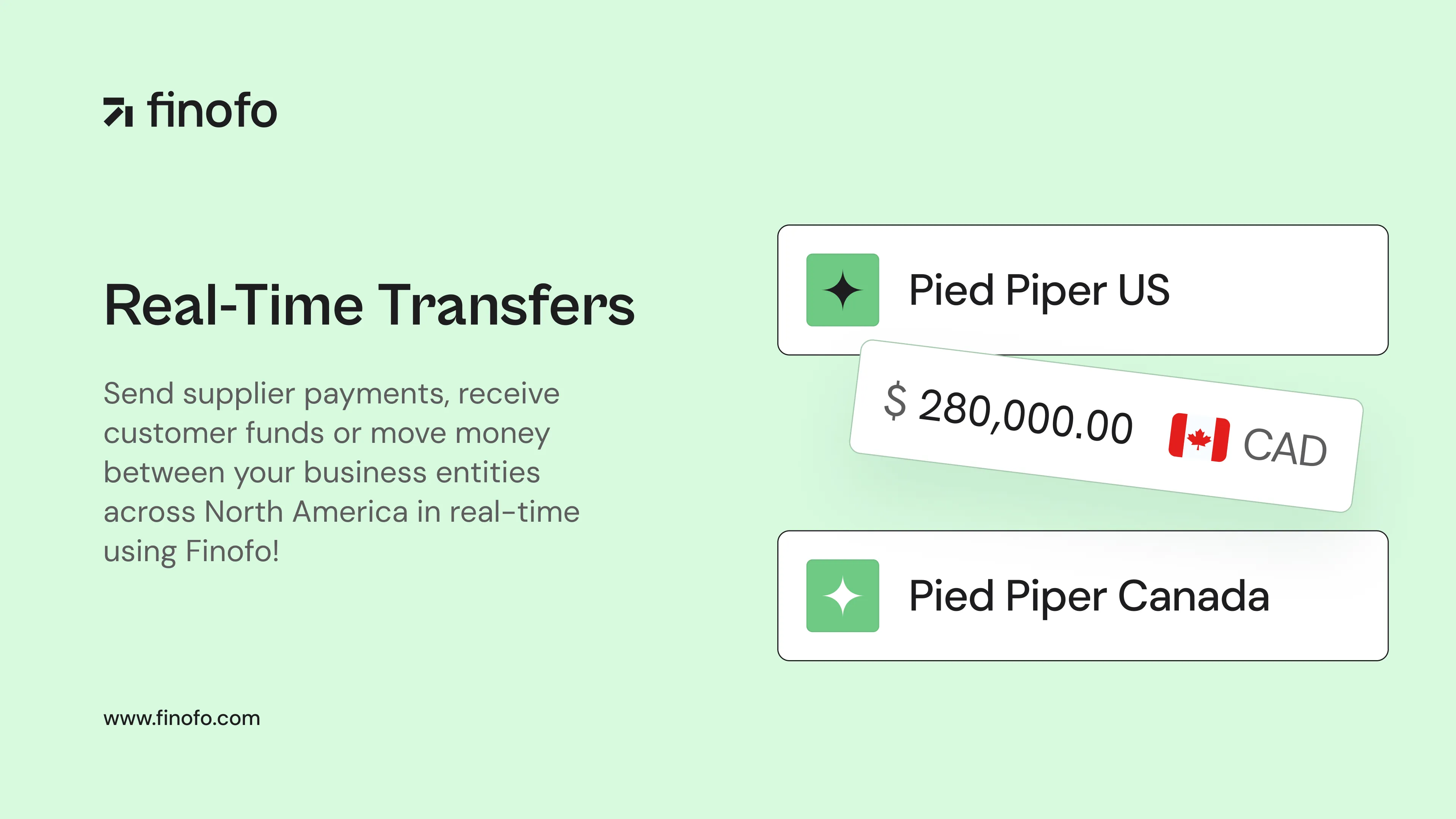 For the first time ever in North America, real-time money movement is now a reality. Whether it's between your own entities, to your suppliers, or receiving funds from your customers in Canada and the US - instant real-time transfers are at your