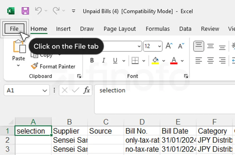 Please navigate to the 'File' tab in the Excel sheet.