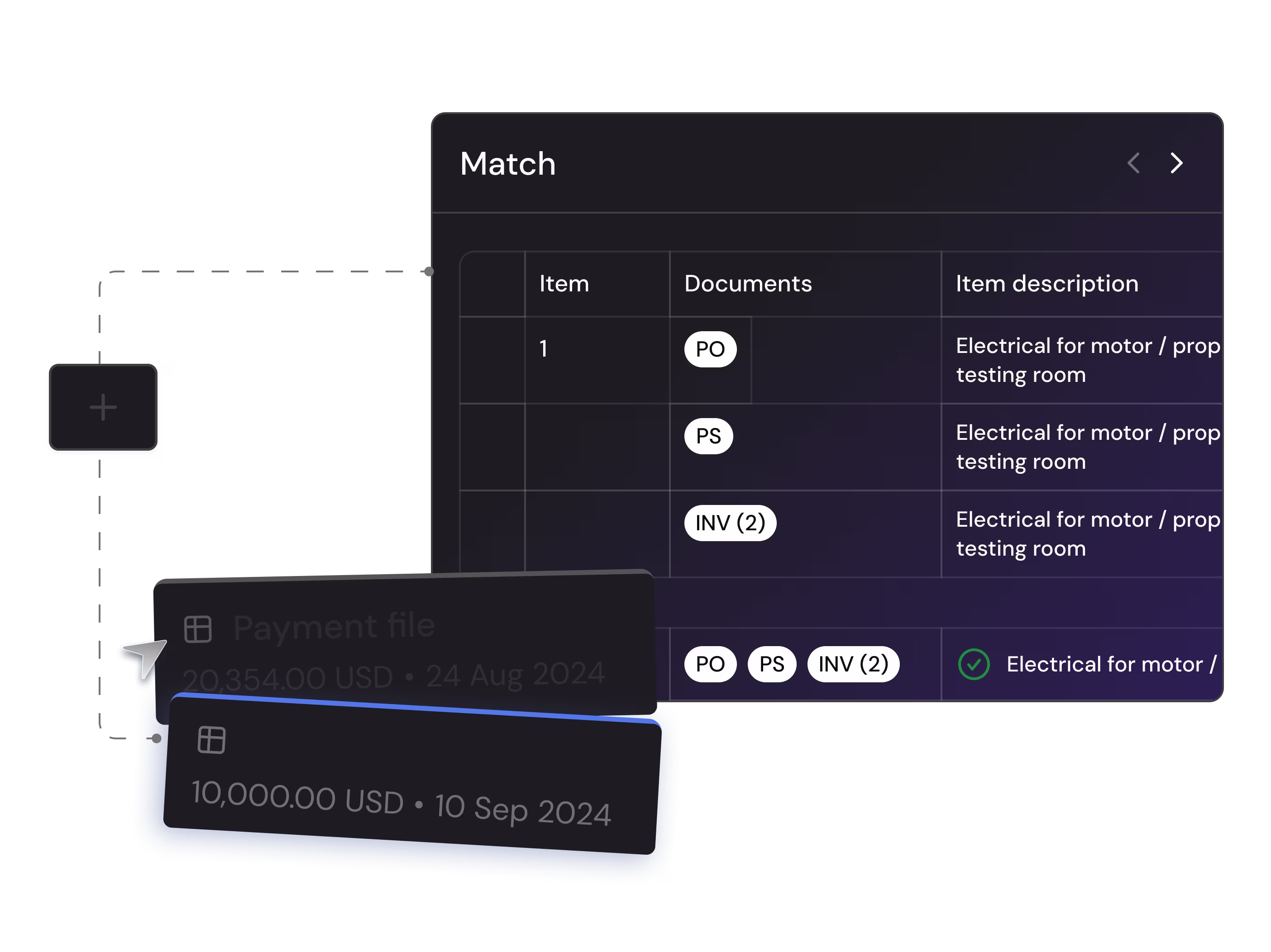 Invoices are captured from any source, classified automatically, and matched at the line level.