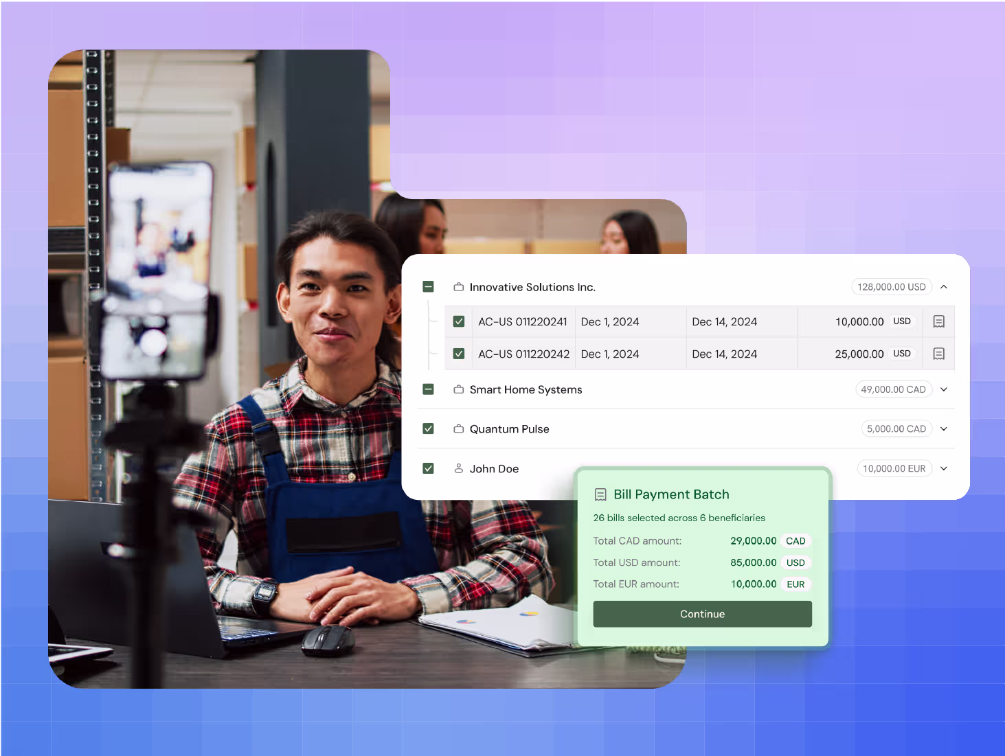 Pay any vendor worldwide with local rails, FX savings, and instant reconciliation.